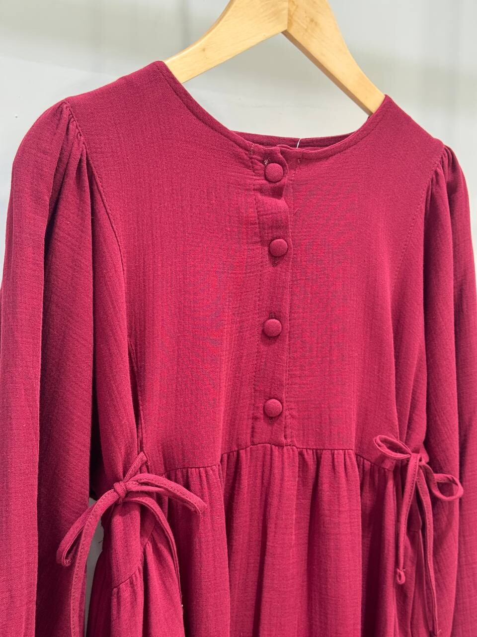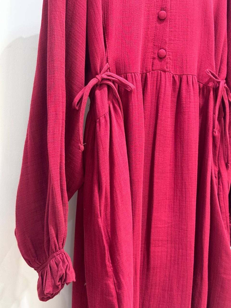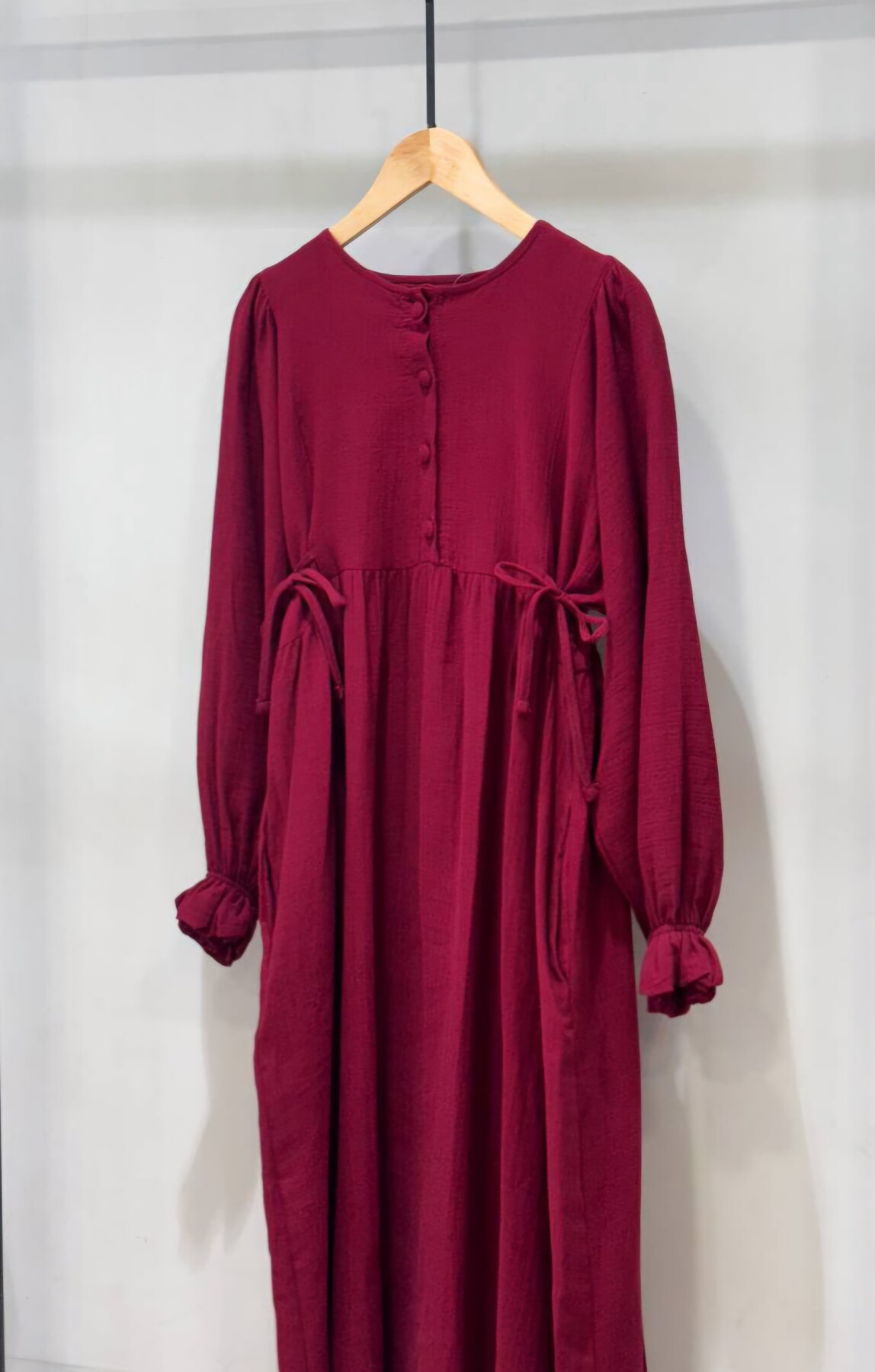 0078 Müslin Belden Bağlamalı Elbise Bordo