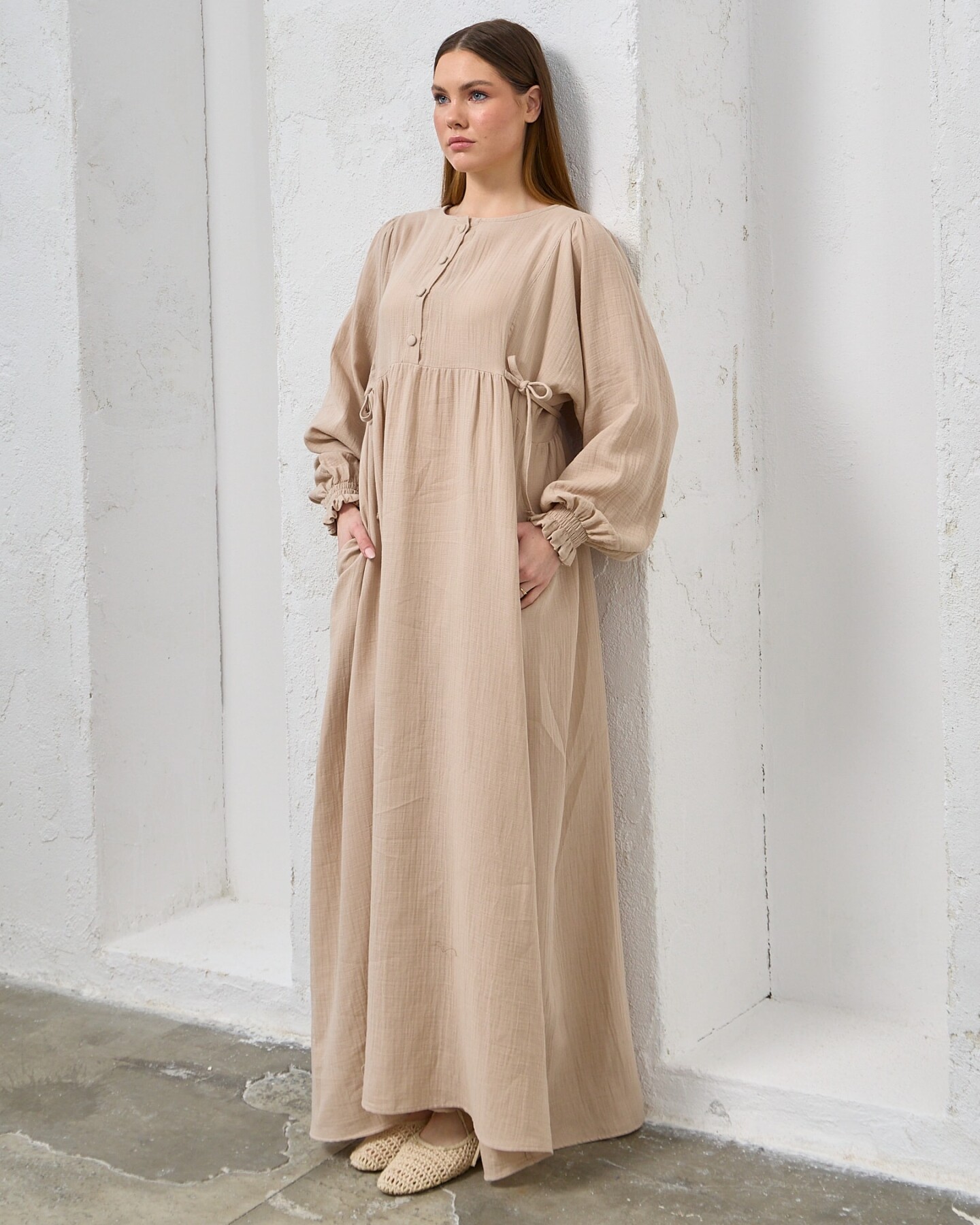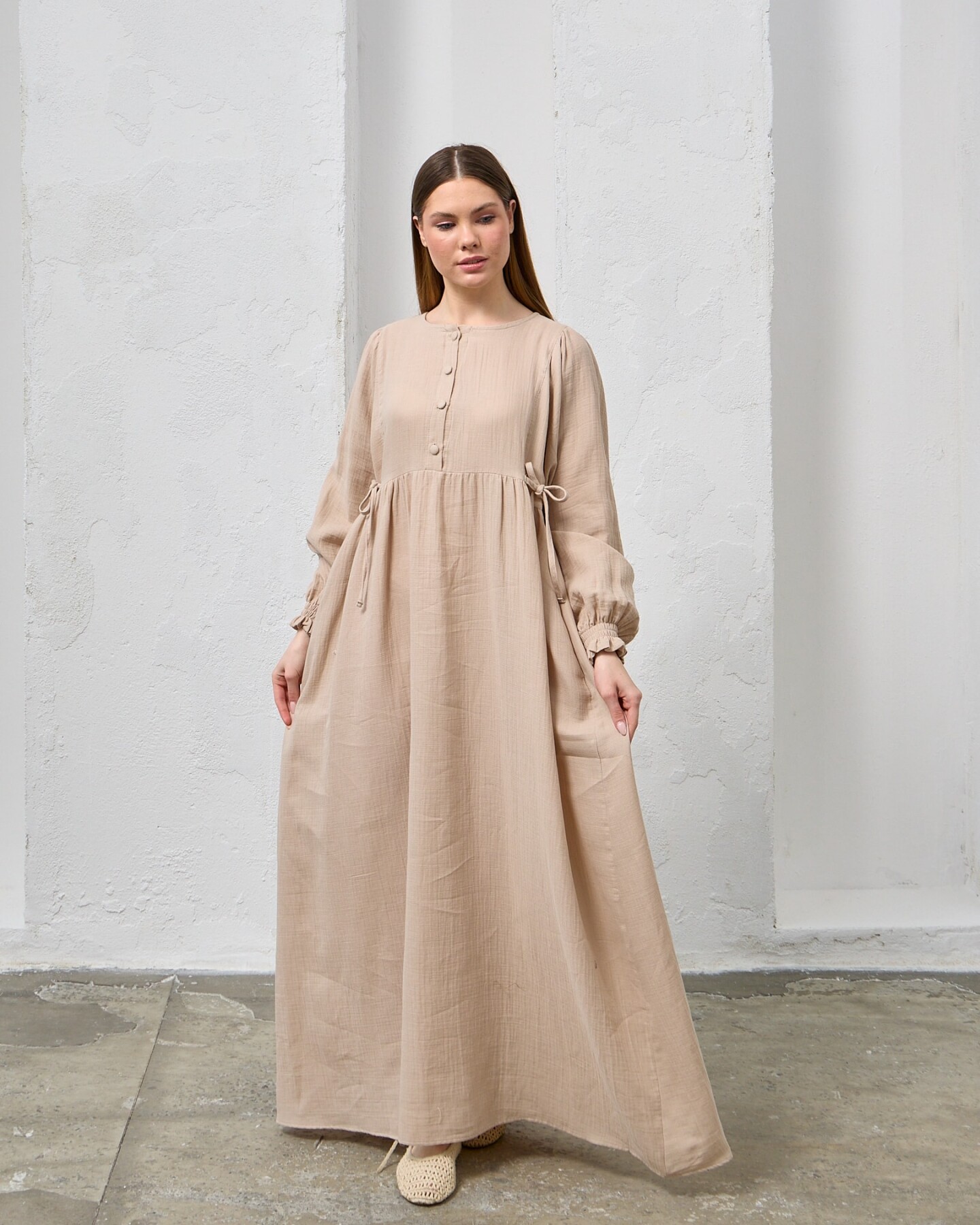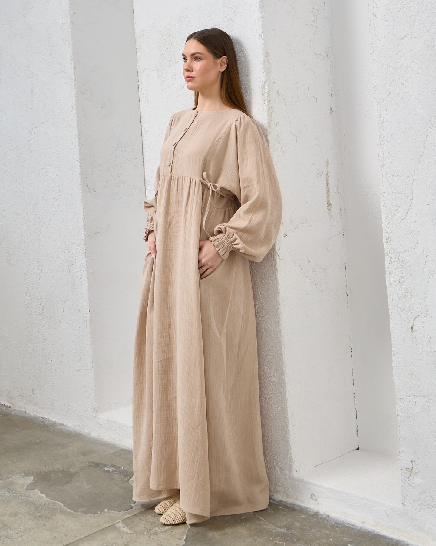 0078 Müslin Belden Bağlamalı Elbise Kirli Taş