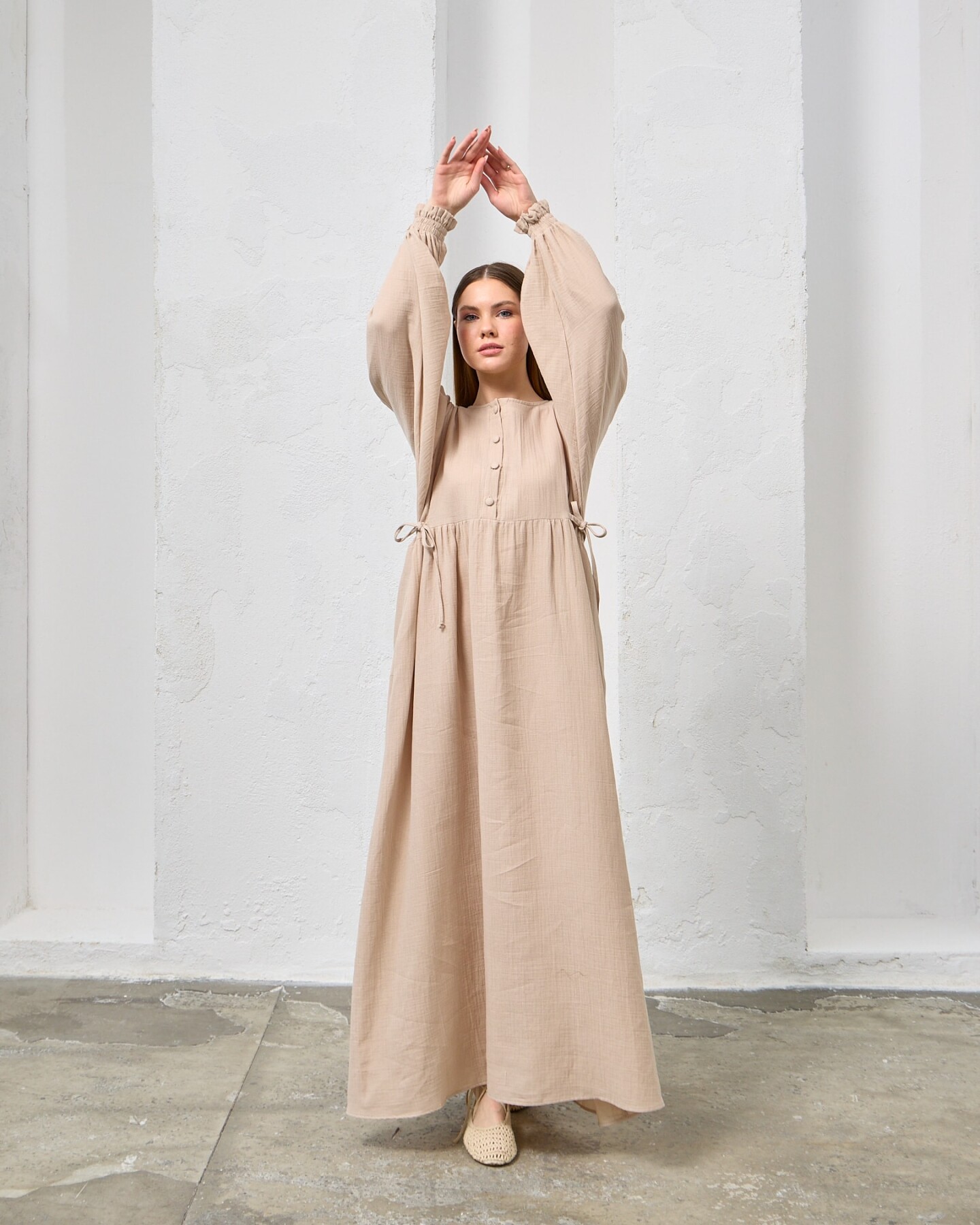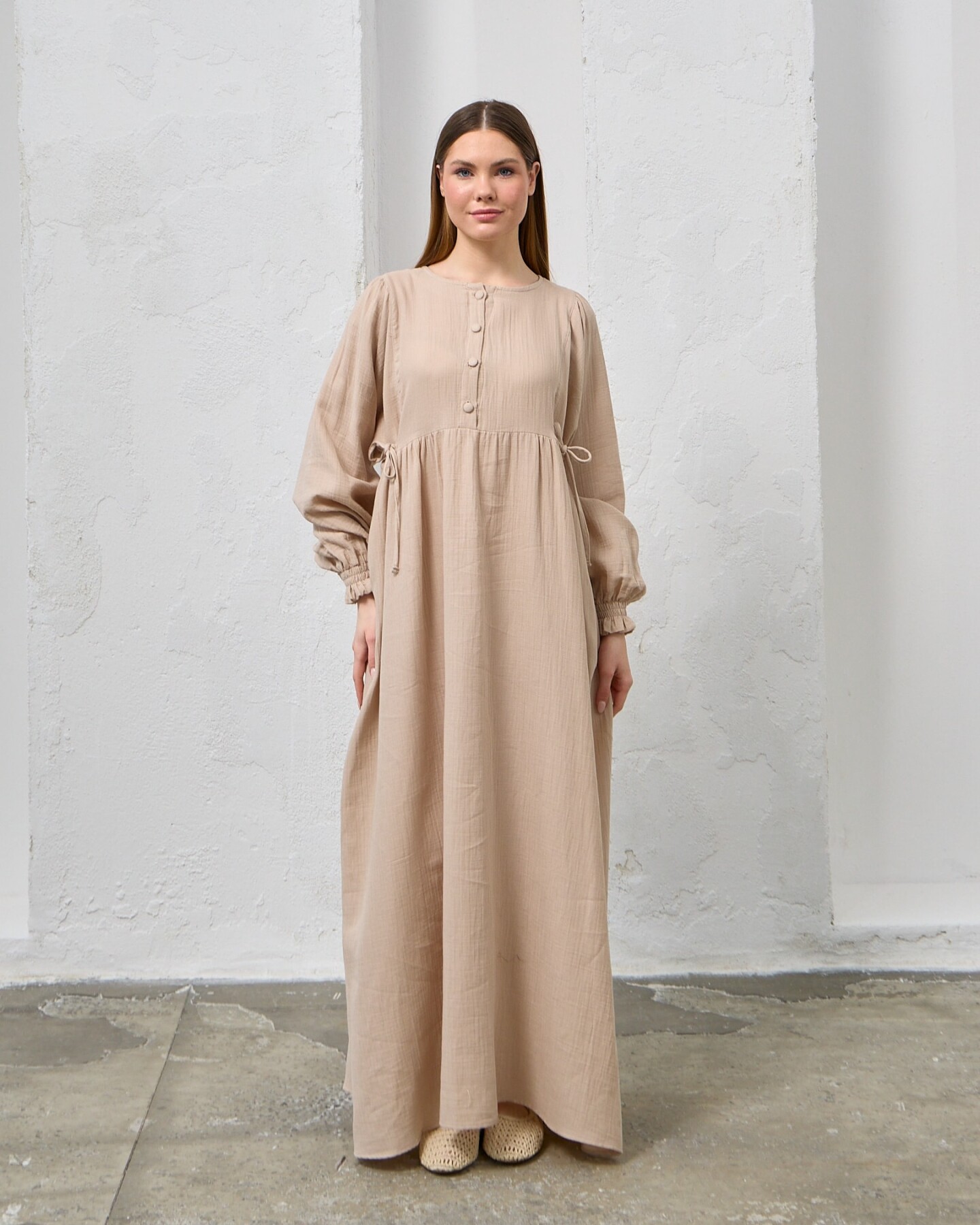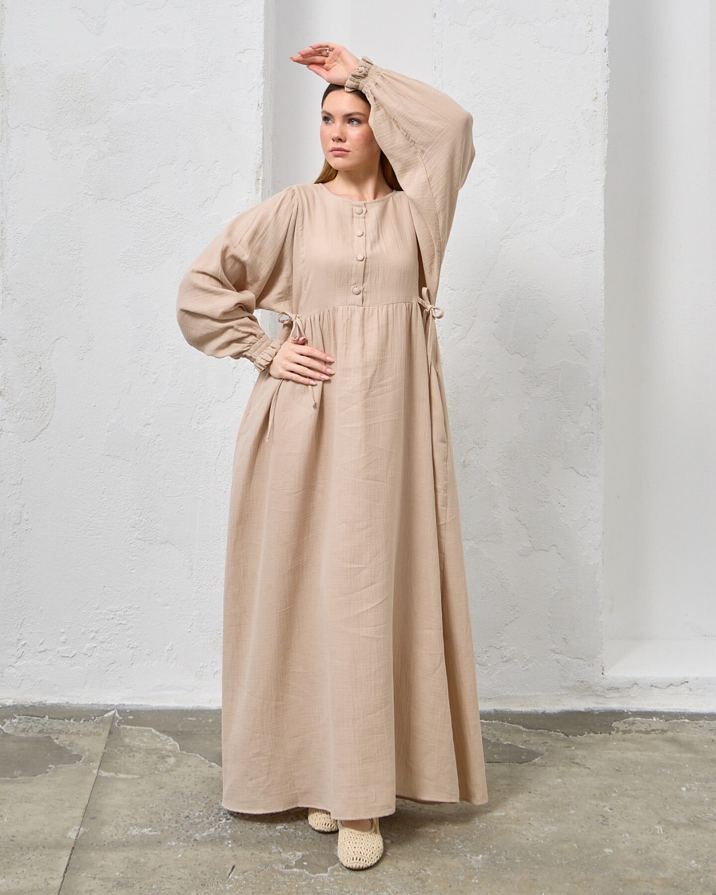 0078 Müslin Belden Bağlamalı Elbise Kirli Taş