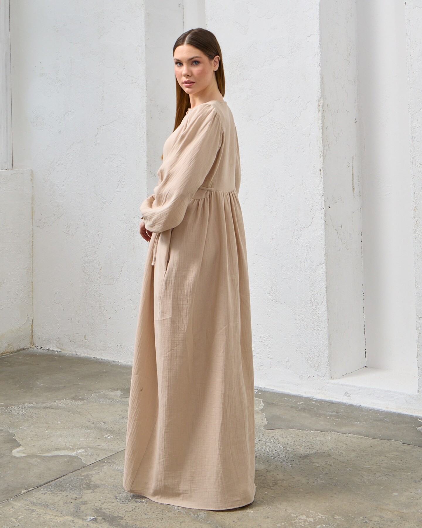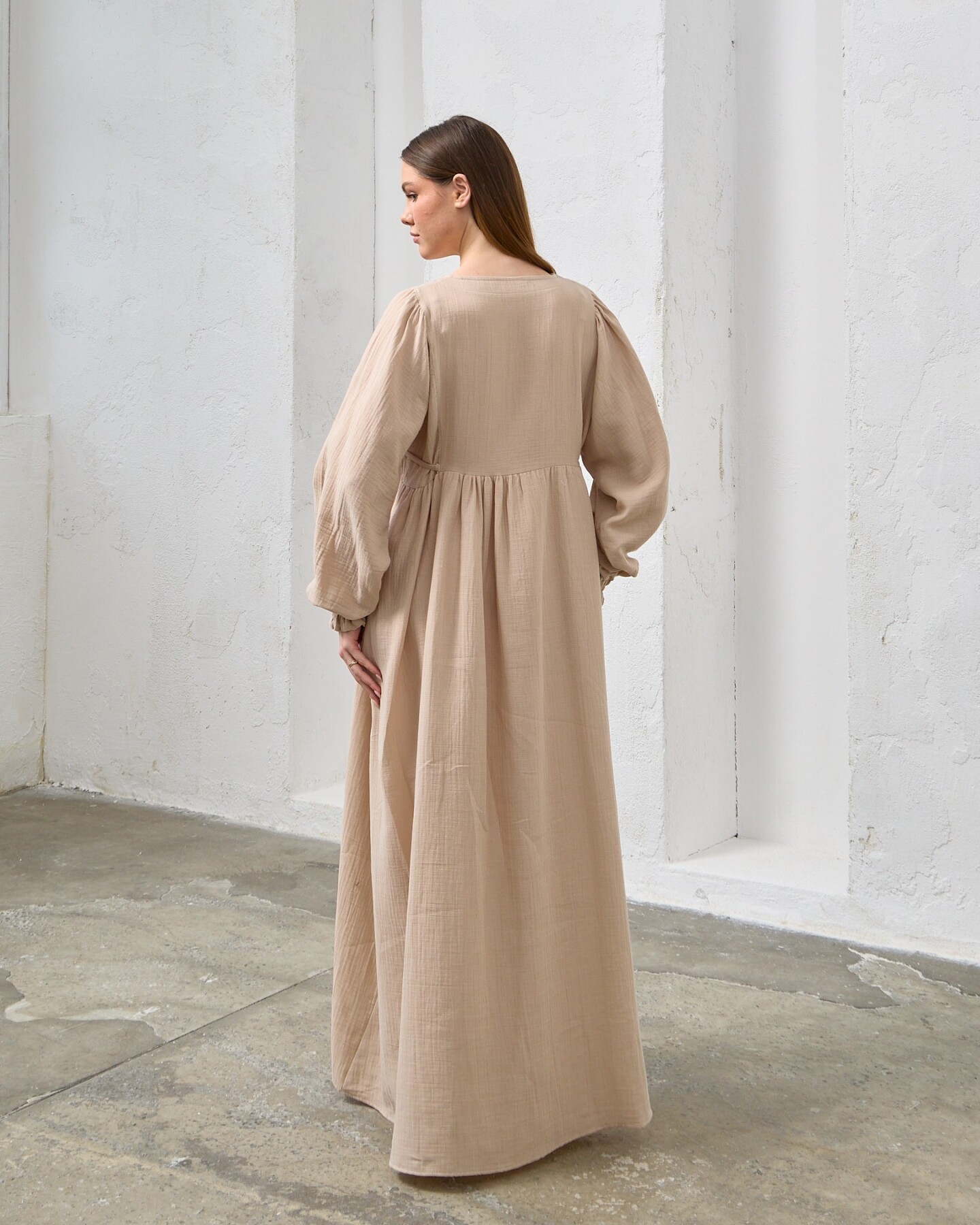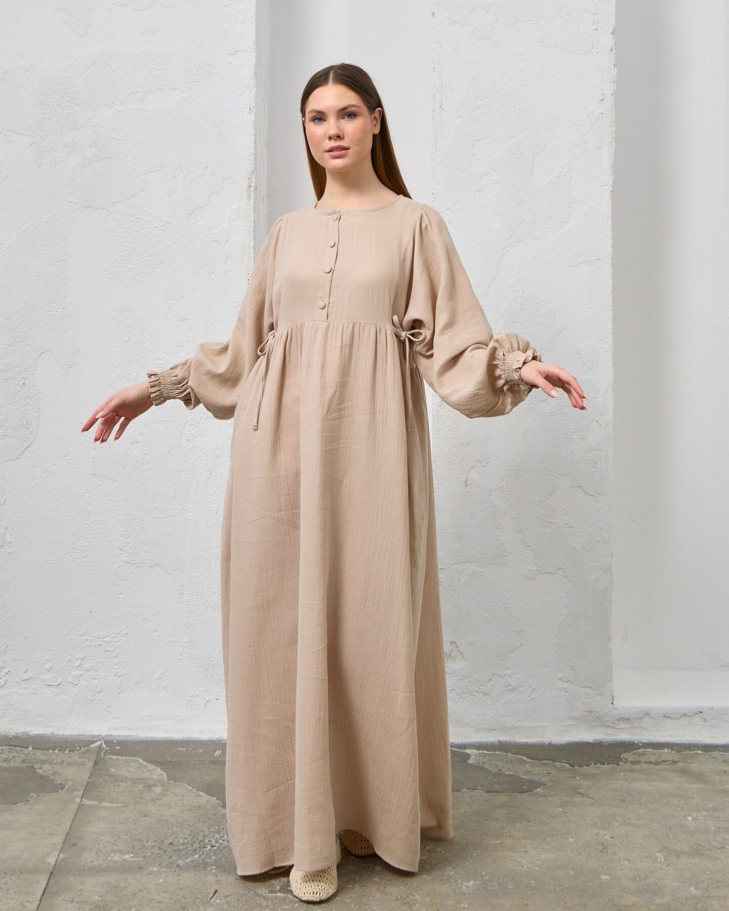ÜRÜN BİLGİLERİKUMAŞ: MüslinUZUNLUK:143MANKEN ÖLÇÜLERİMANKEN ÜZERİNDEKİ BEDEN: Std BEDENDİRBOY: 1.75KİLO: 53GÖĞÜS: 80CMBASEN: 84CMOMUZ: 90CMKOL: 50CM