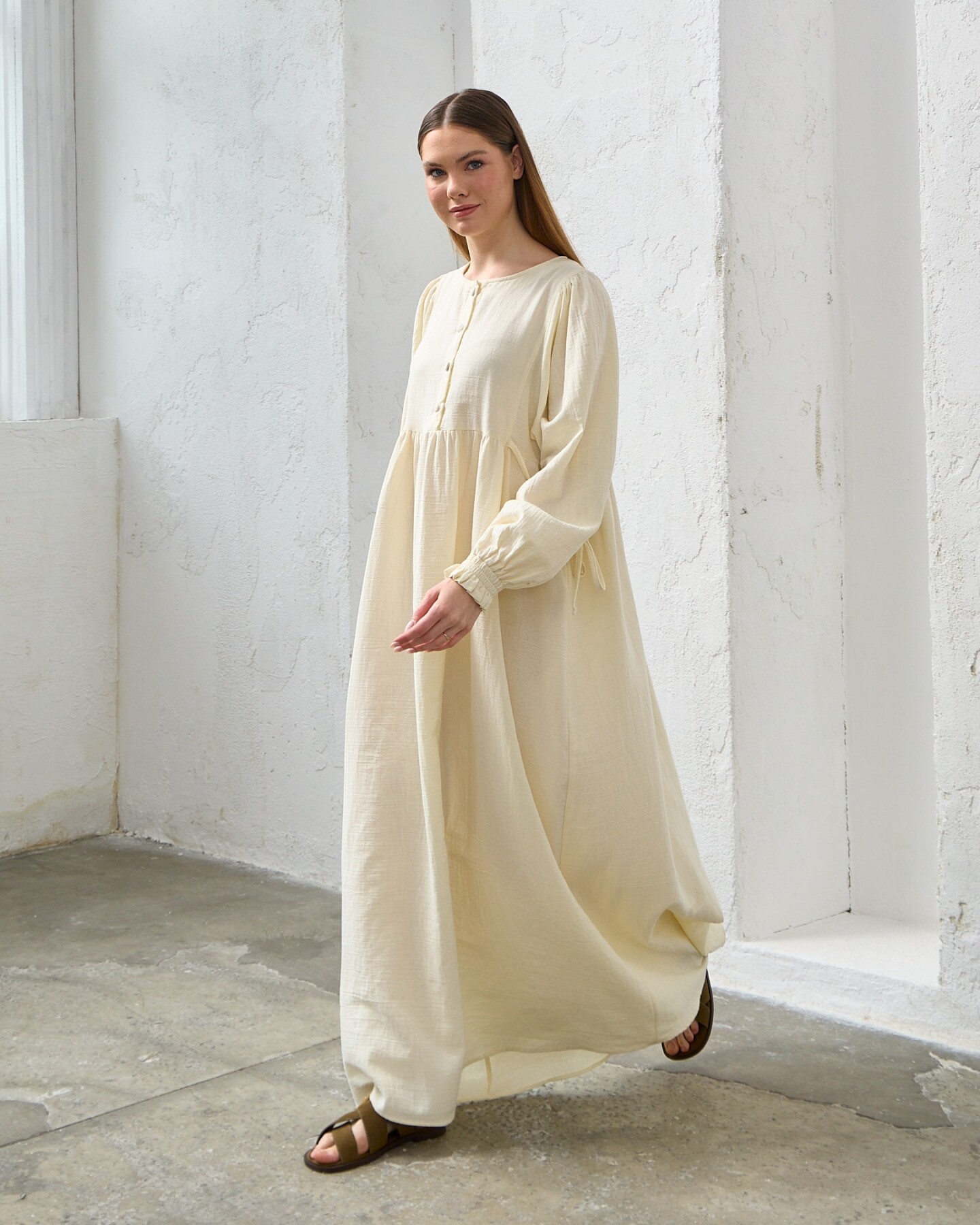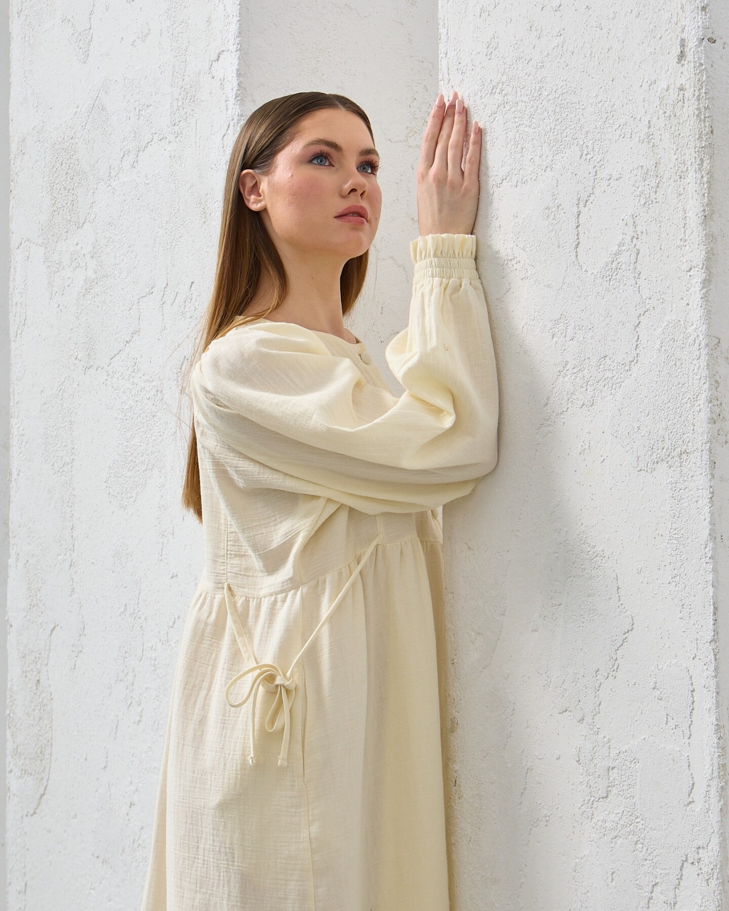 0078 Müslin Belden Bağlamalı Elbise Naturel