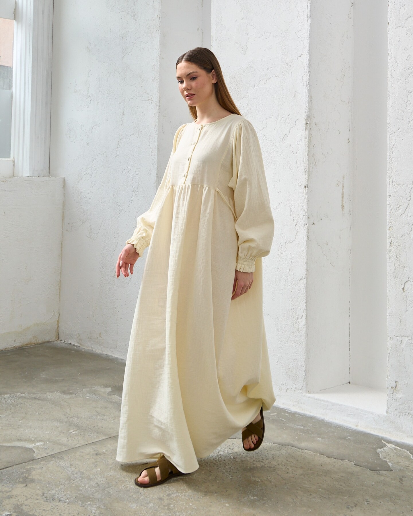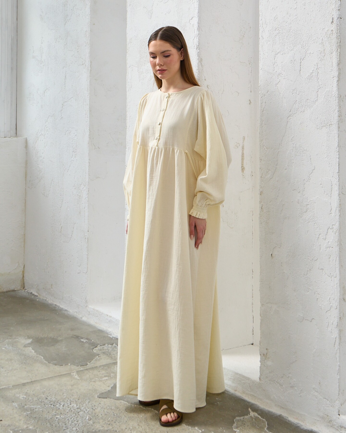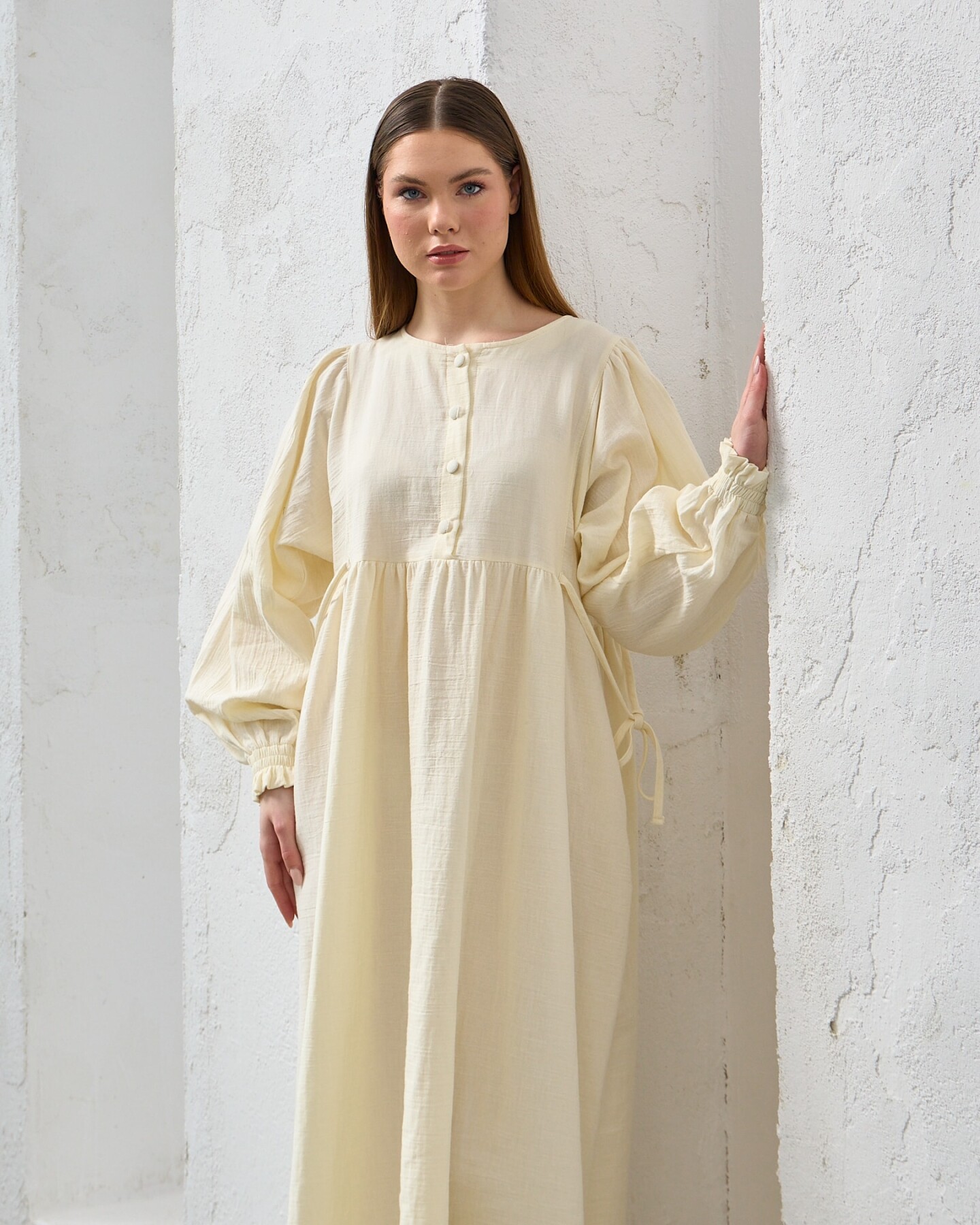 ÜRÜN BİLGİLERİKUMAŞ: MüslinUZUNLUK:143MANKEN ÖLÇÜLERİMANKEN ÜZERİNDEKİ BEDEN: Std BEDENDİRBOY: 1.75KİLO: 53GÖĞÜS: 80CMBASEN: 84CMOMUZ: 90CMKOL: 50CM