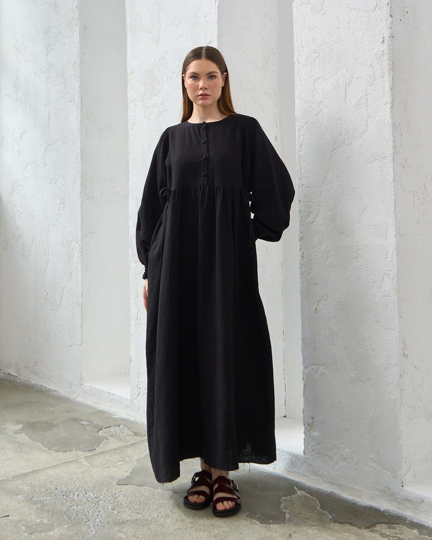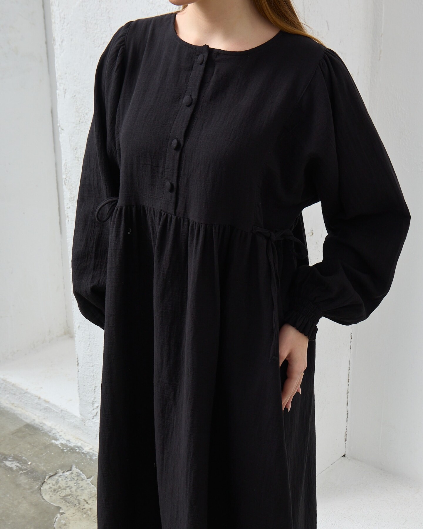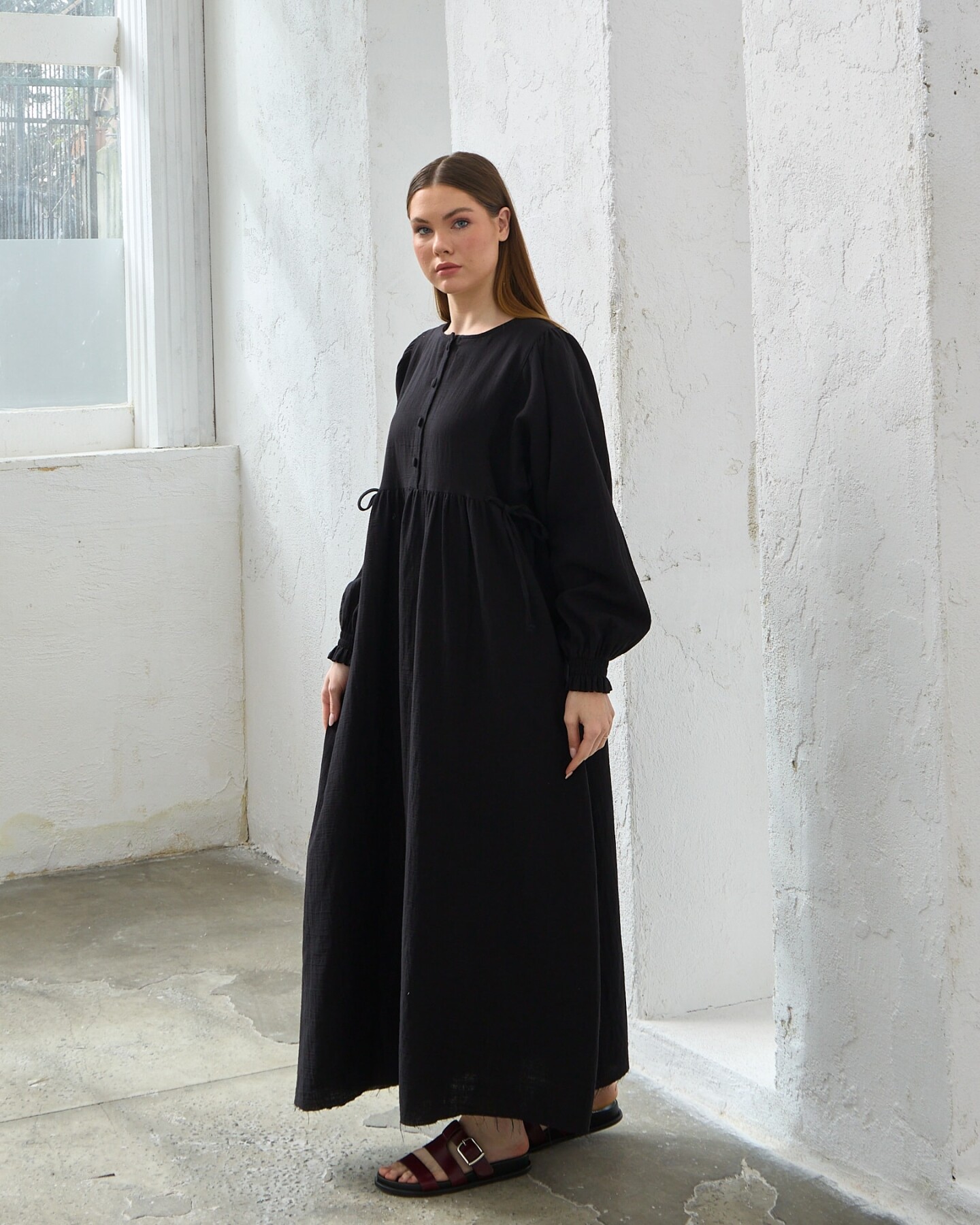 0078 Müslin Belden Bağlamalı Elbise Siyah