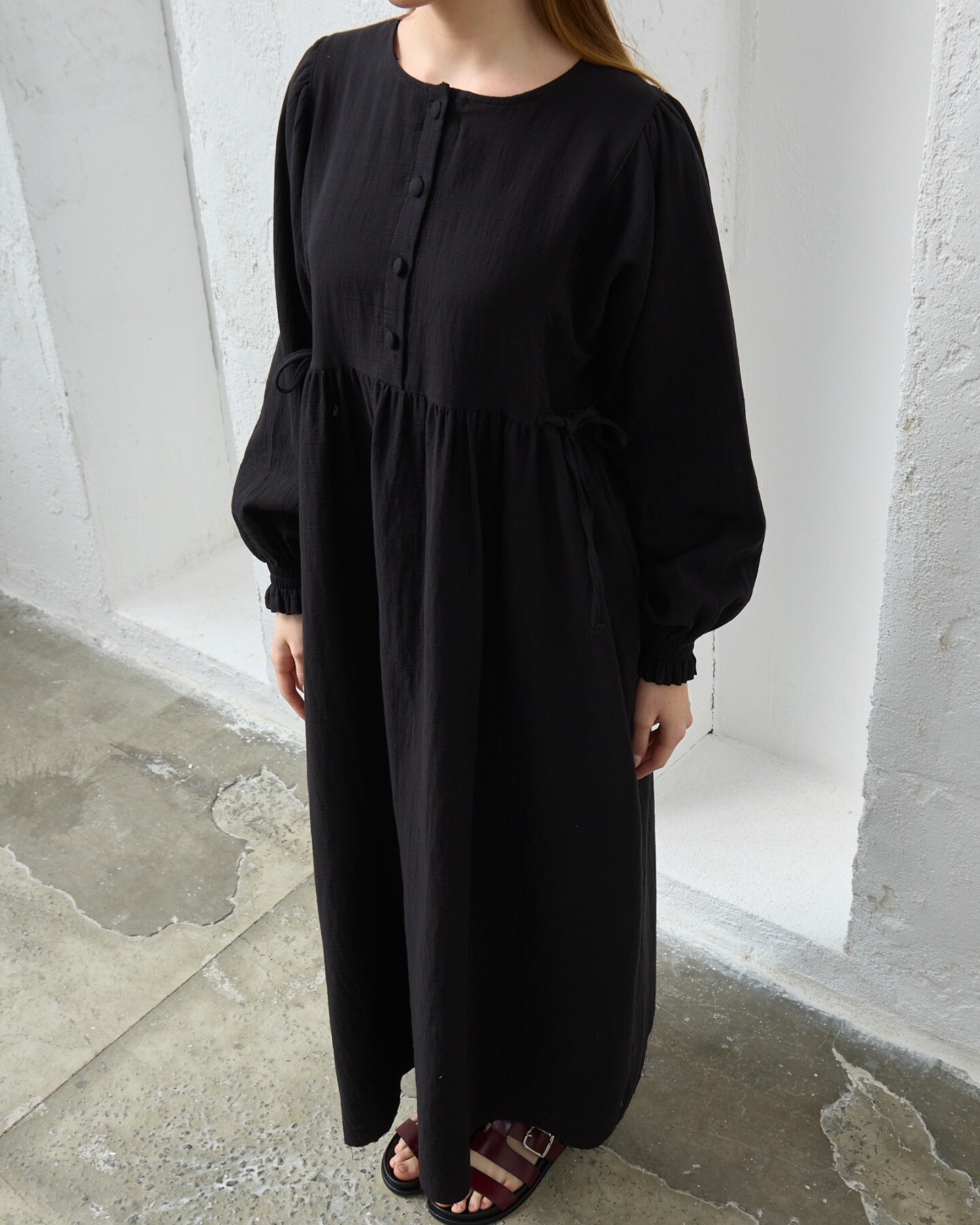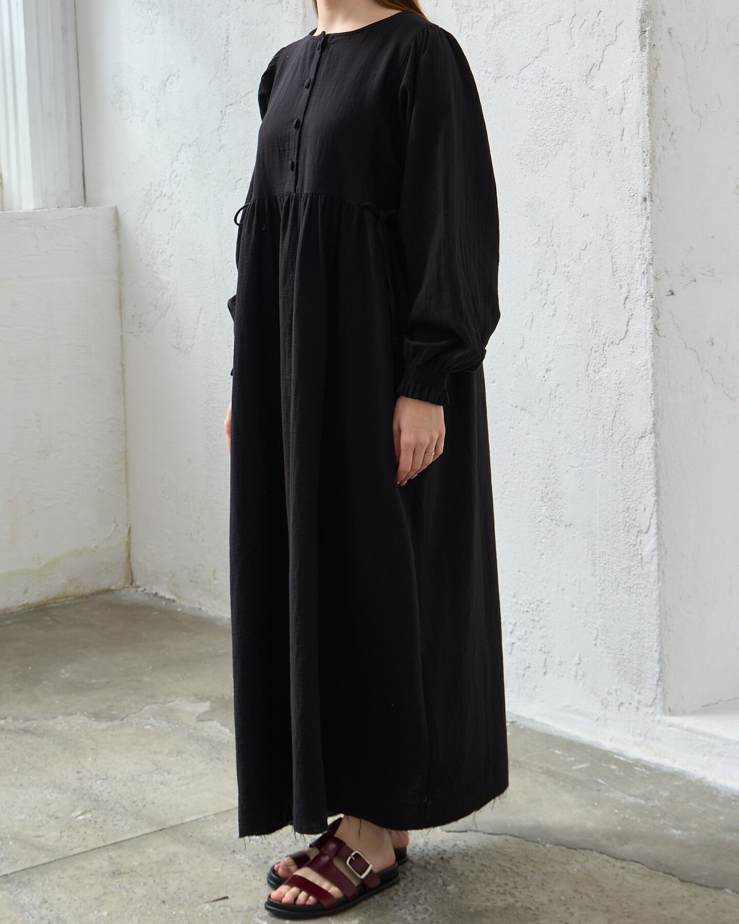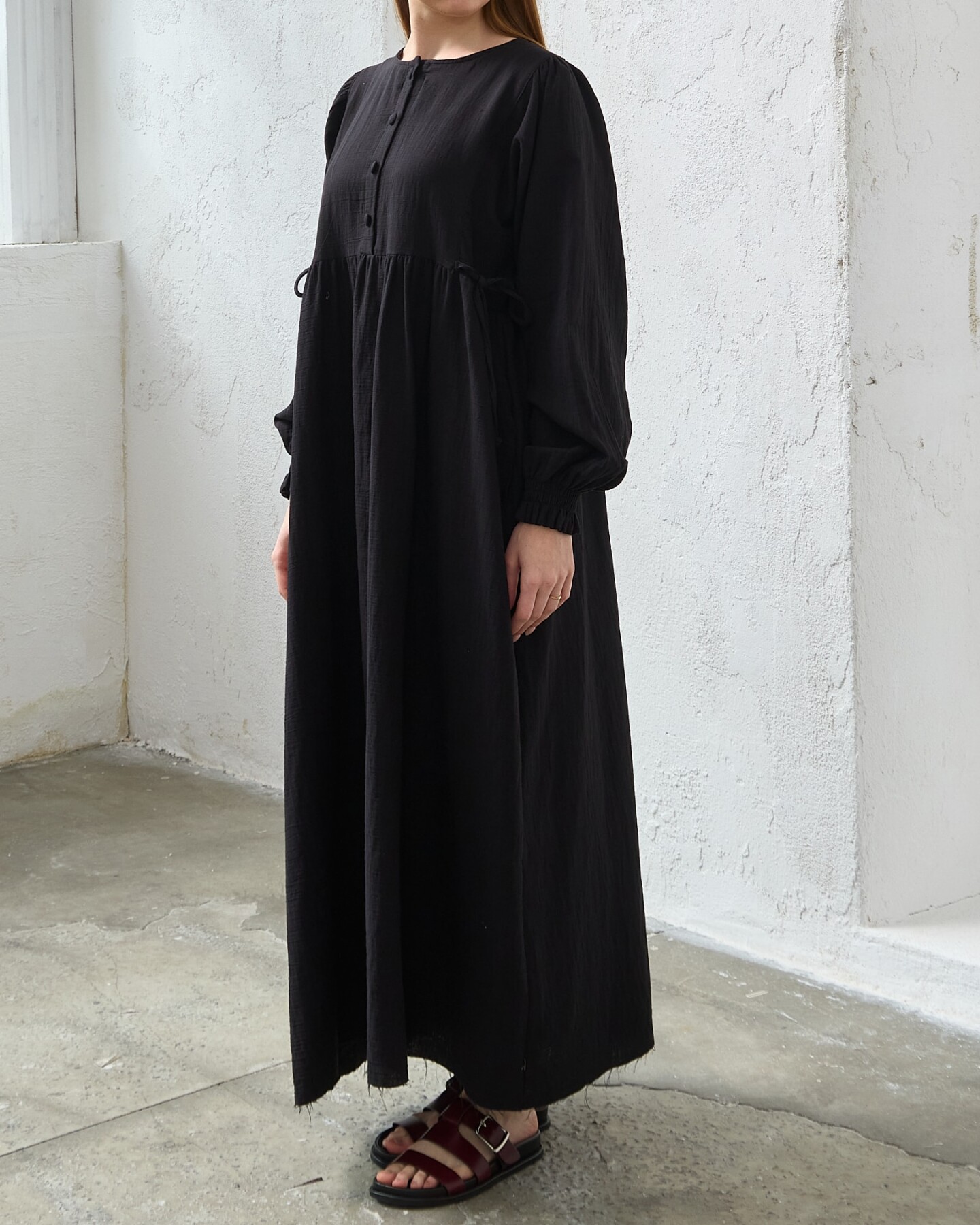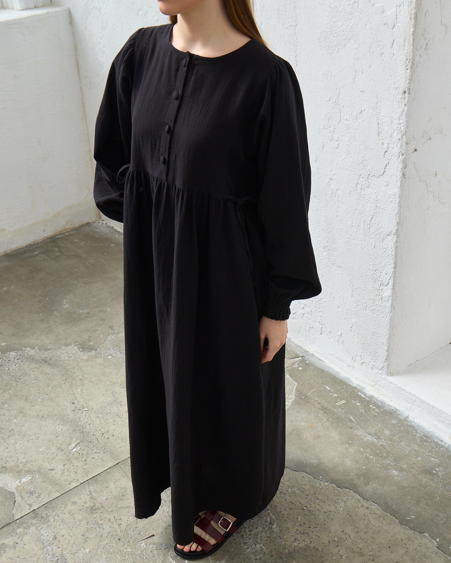0078 Müslin Belden Bağlamalı Elbise Siyah